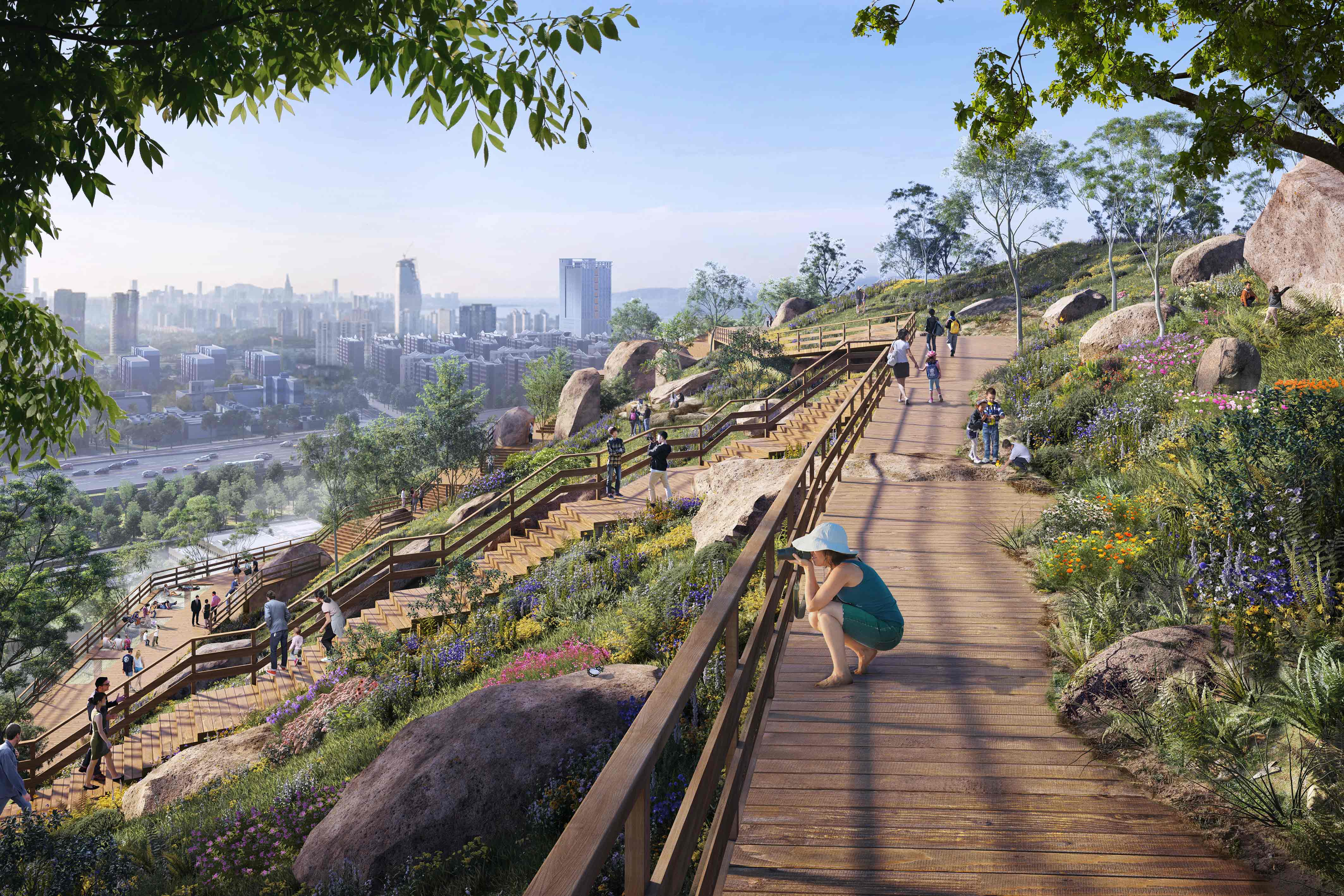 La montagne Antuo a été témoin du processus de récupération des terres de Shenzhen. Grâce à la construction de parcs d'art naturels et de musées, le mont Antuo nourrira une nouvelle tendance de la culture et de l'art urbains et deviendra un parc de falaises de montagne. La conception de la façade de la falaise de la montagne Antuo, deviendra un palais d'art dynamique. Les gens peuvent toucher le pouvoir de la nature dans la grotte de l'âme, assister à la naissance d'œuvres d'art dans la grotte d'art, méditer dans les grottes et soupirer le passage du temps dans la porte du temps.