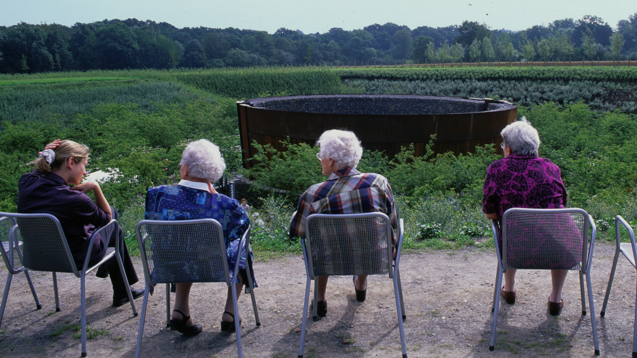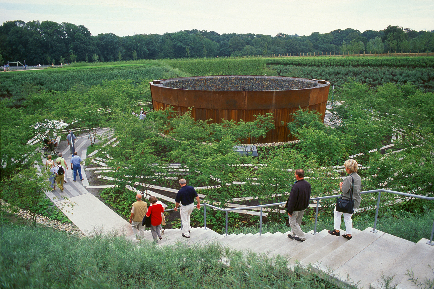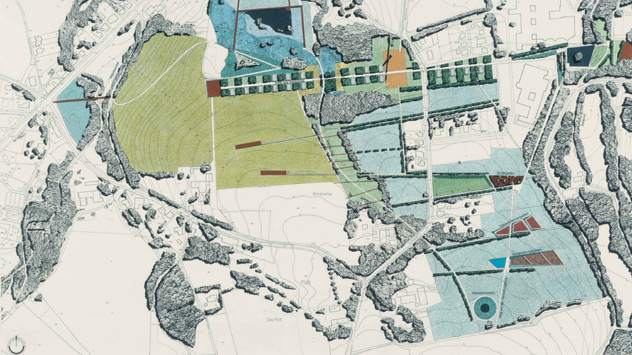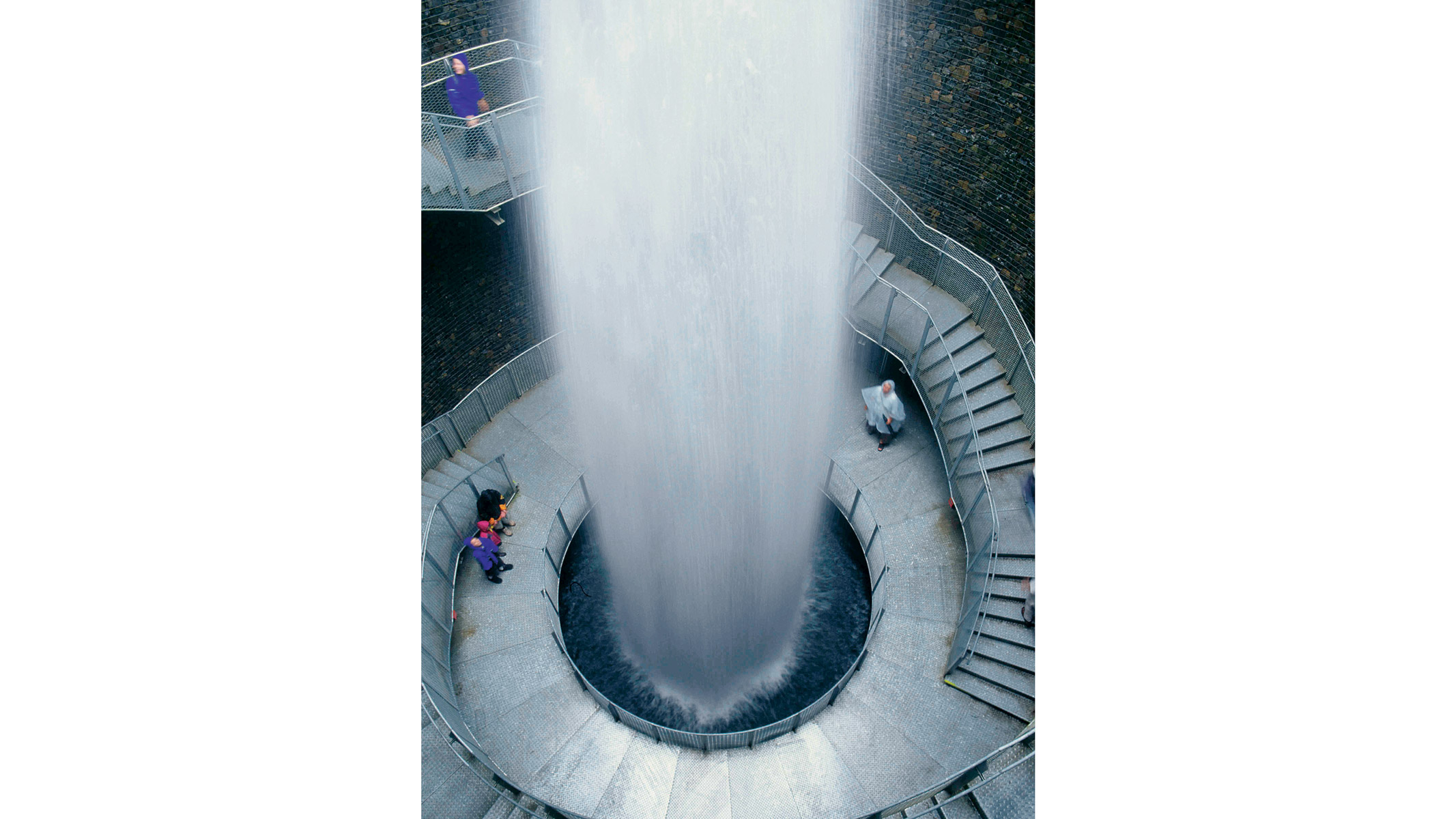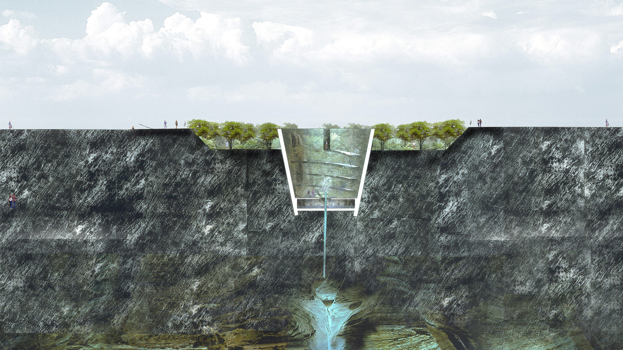 Une analyse géologique de ce terrain montre qu’il est parcouru par une grande faille souterraine pourvoyeuse d’eau thermale. L’Agence Ter choisit de libérer cette eau pour en célébrer les qualités à ciel ouvert grâce à un « cratère ». Les visiteurs accèdent 20 mètres plus bas, à un bassin projetant à intervalles réguliers d’énormes jets d’eau vers le ciel. En surface, la faille souterraine devient la ligne de force sur laquelle est créé un parcours aquatique. Des murs de gabions orientent le public vers les jardins d’eau, une succession de bassins, ludiques et écologiques.