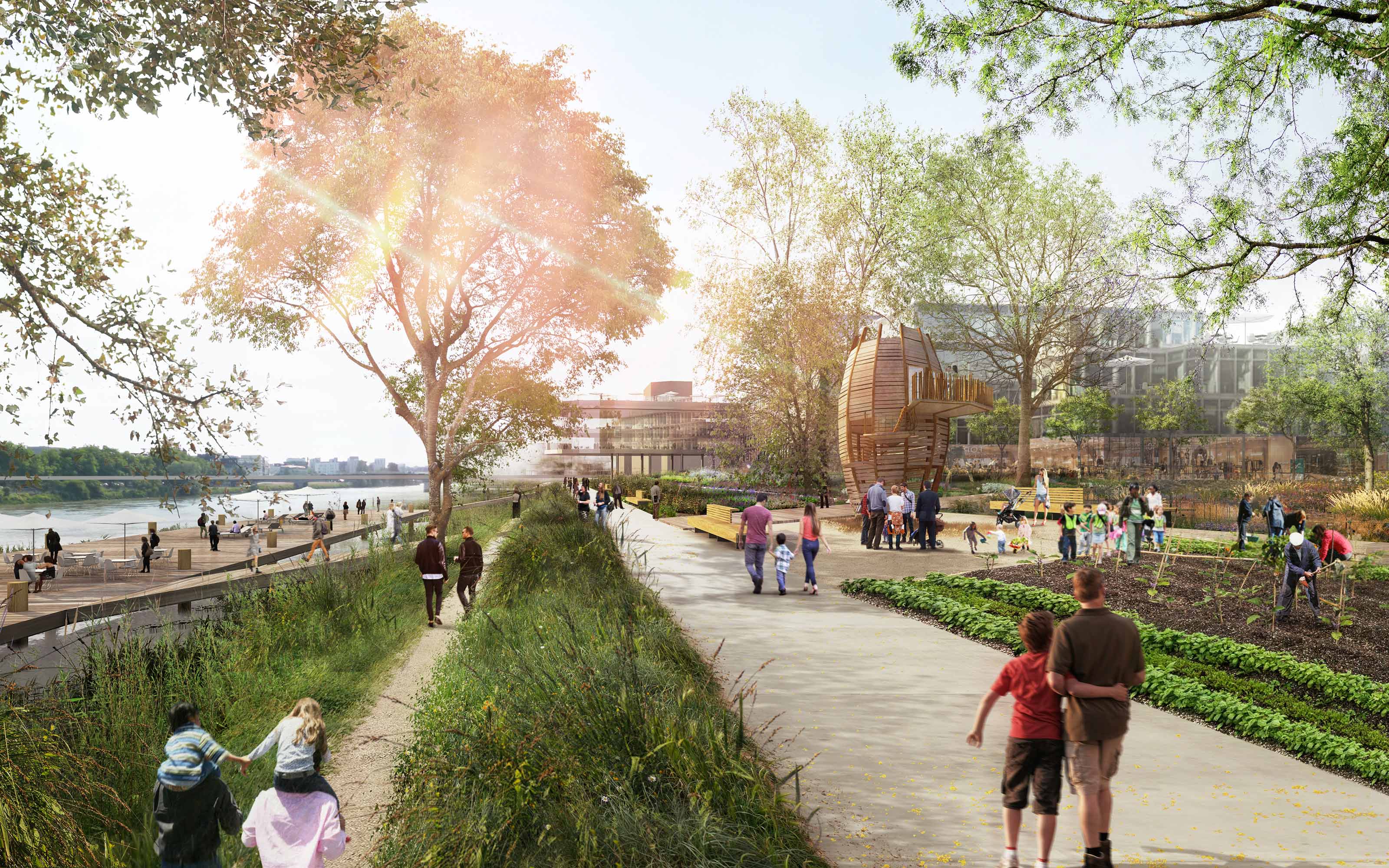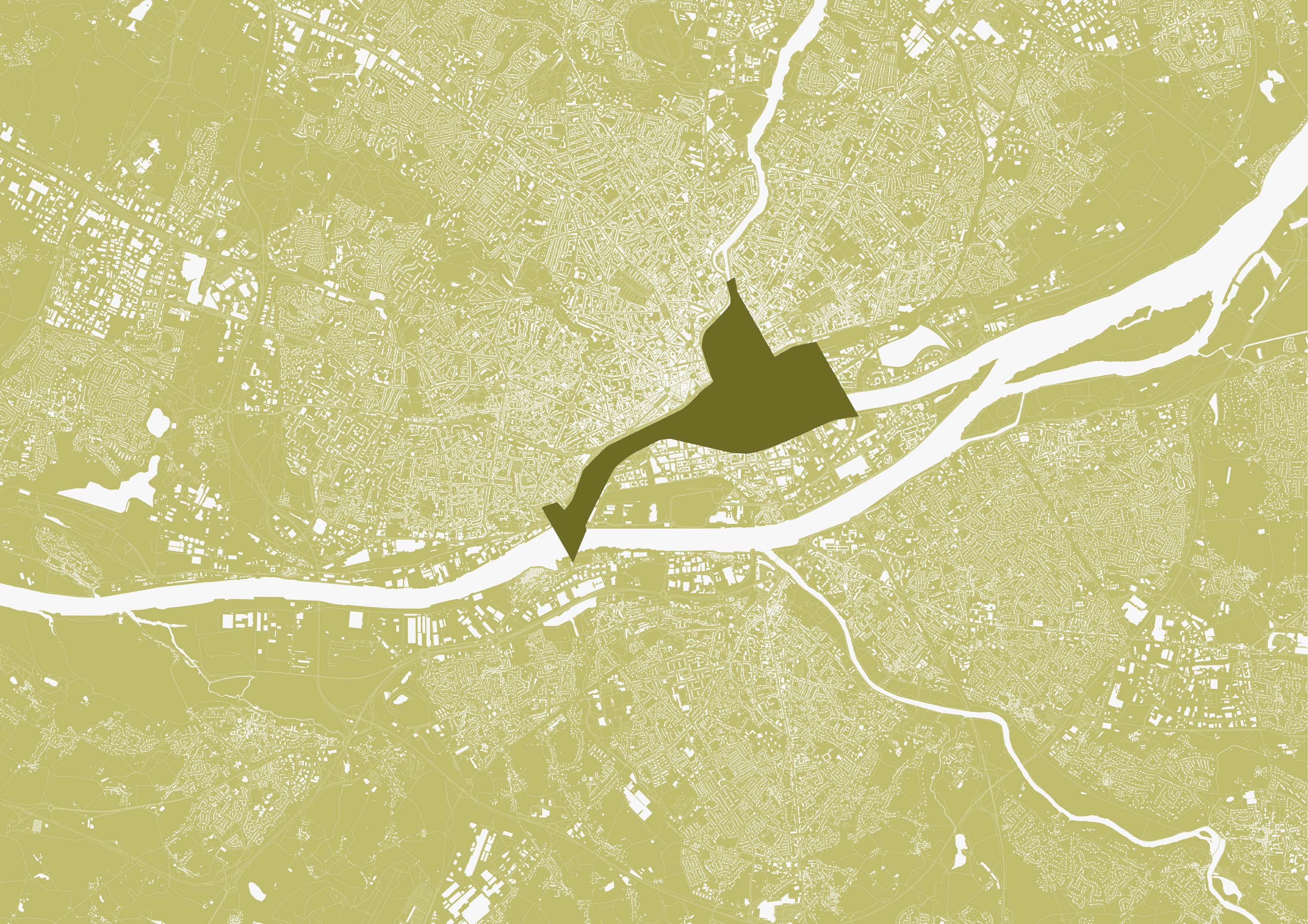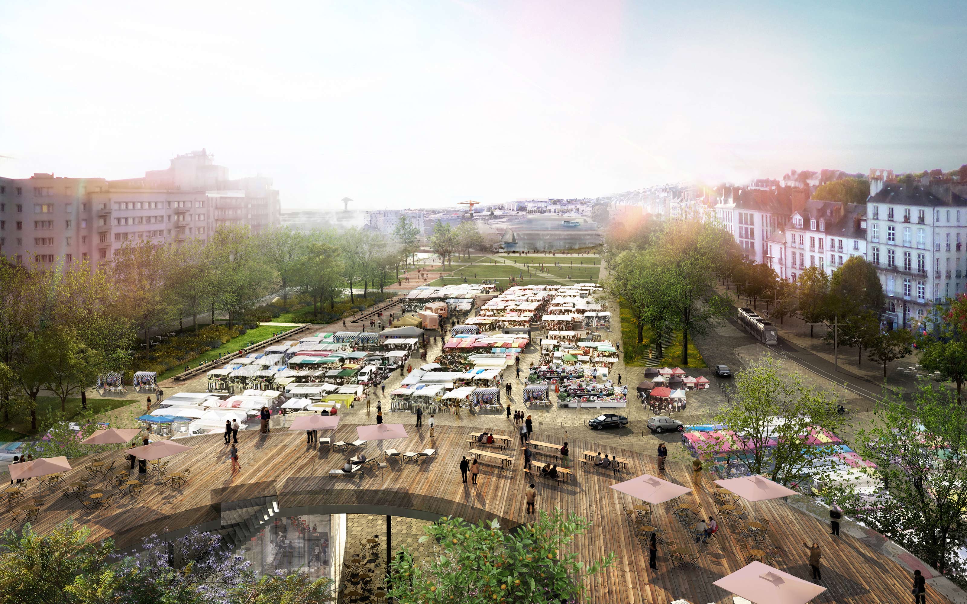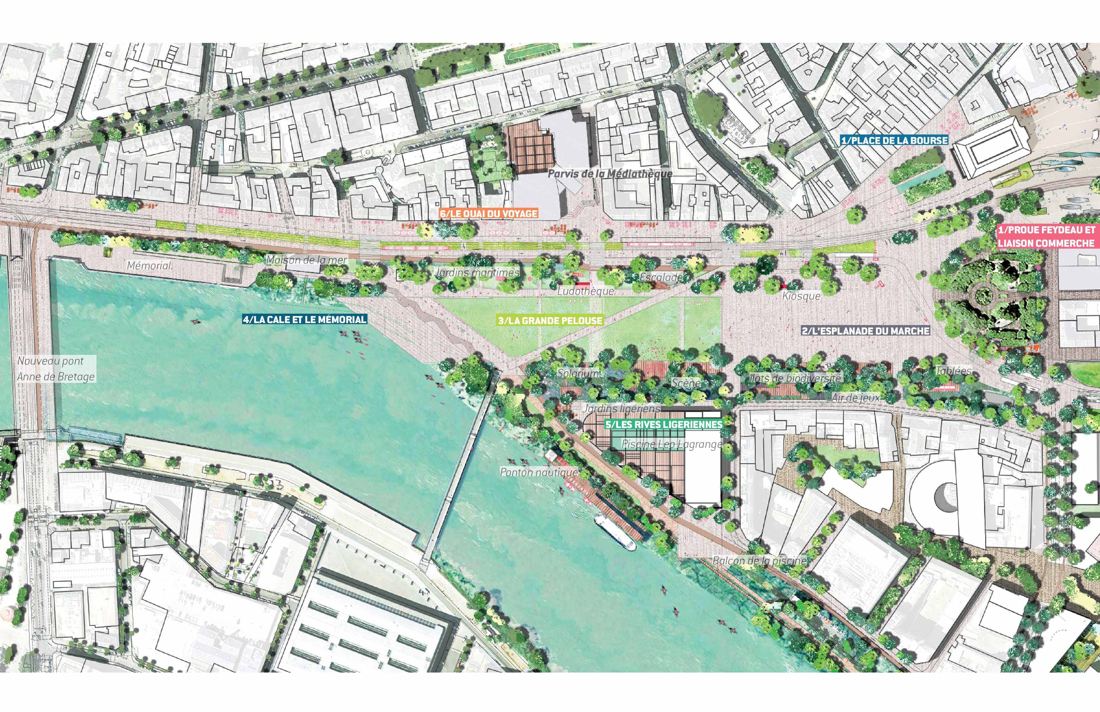 Le comblement des bras de Loire a participé à l’effacement du fleuve dans le centre-ville. Le projet vise à retrouver le contact entre la ville et le fleuve, et une réappropriation par les usages, les sens, et le paysage. Le plan de cohérence vise tout d’abord à révéler la richesse des identités de la Loire. La petite Hollande est une grande place-parc métropolitaine et capable, qui se plie au contact de l’eau par des emmanchements, laissant ville et Loire s’épouser en un vaste promontoire. La cale Saint-Felix devient un espace festif et sportif, marquant la nouvelle porte Sud de la métropole.