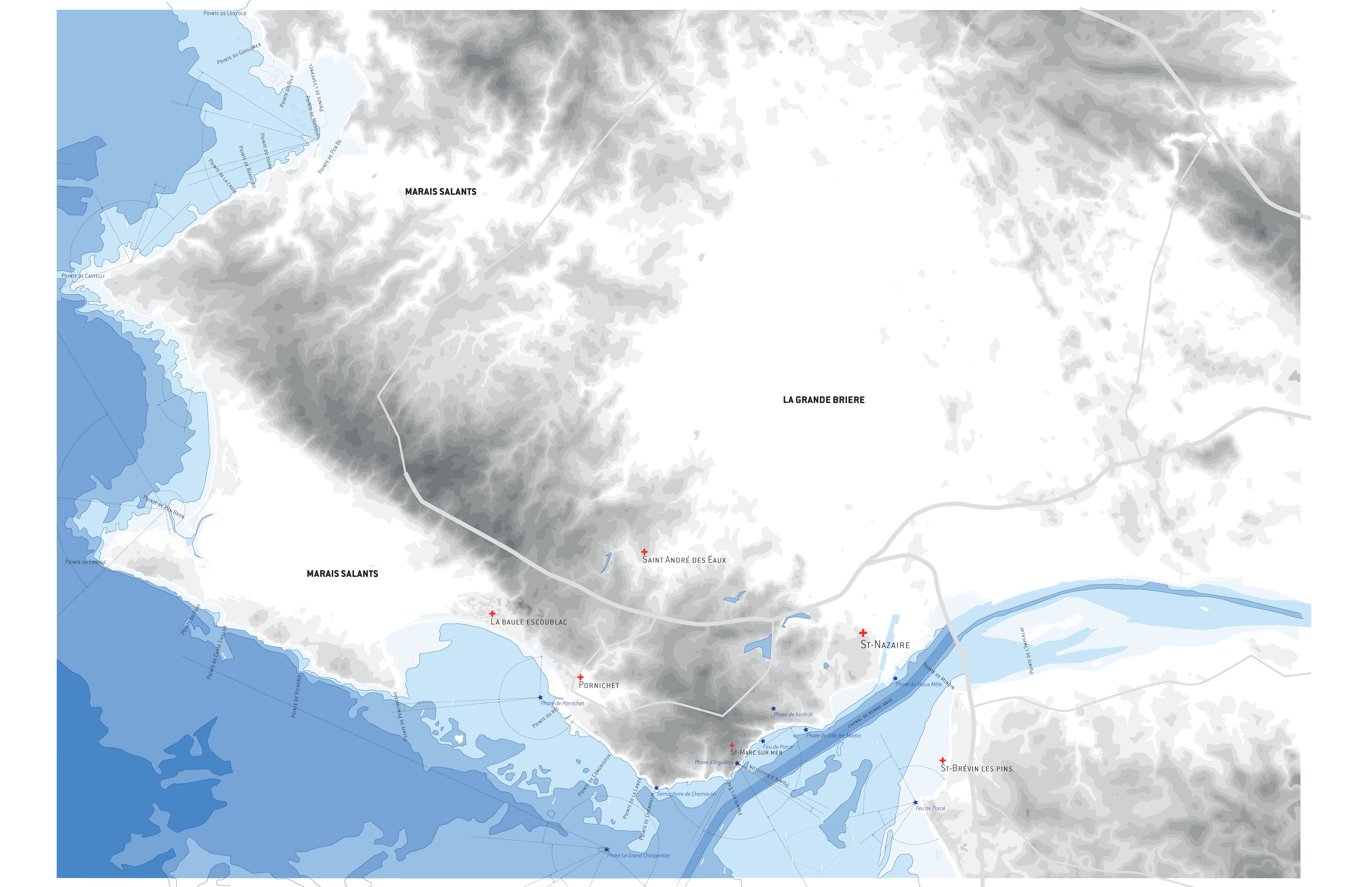 L’étude façade littorale, lit le territoire à travers son caractère insulaire. La notion de bords, entendue ici comme zone privilégiée d’échanges entre deux milieux distincts, est la réponse conceptuelle et opérationnelle que nous apportons. Cette approche « macro » montre de quelle manière les Bords peuvent jouer un rôle dans la stratégie d’ensemble. C’est un outil transversal qui permet d’aborder toutes les problématiques simultanément (tourisme, écologie, développement urbain, foncier …). Les Bords sont des lieux stratégiques, prioritaires mais aussi fragiles.
