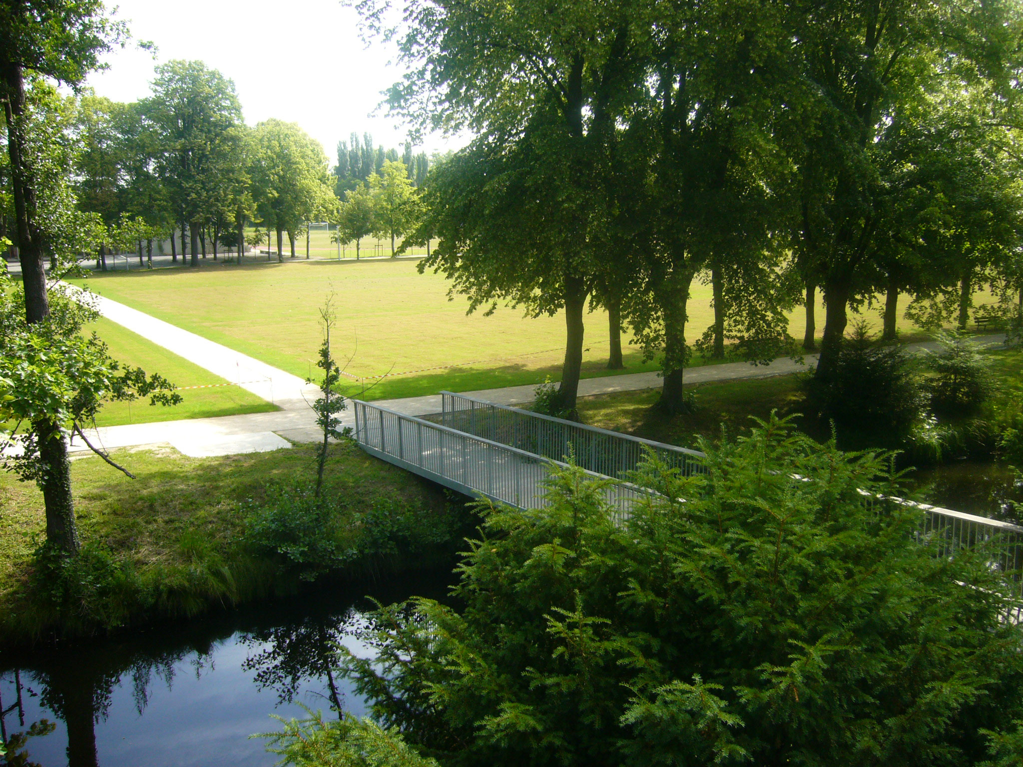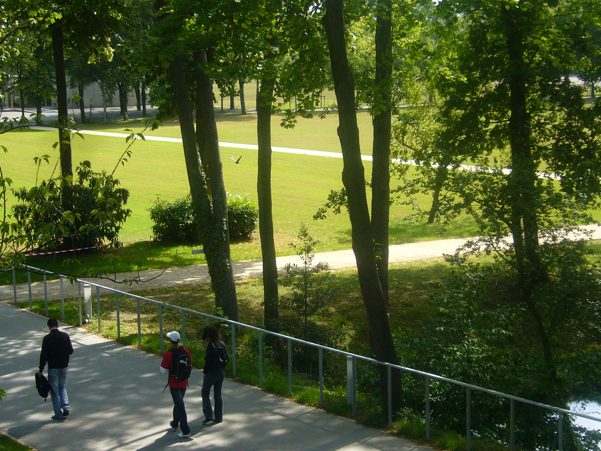 Le projet met le parc au centre à travers une pelouse, immense tapis vert libre d’accès et de fonction. Les liens entre ses pôles se réalisent essentiellement au travers de trois circulations centrales : le quai pour la partie enseignement, l’allée nord-sud entre la grande pelouse et les terrains de sport et l’allée Est/Ouest qui relie les différents pôles. Parcourir le lycée se transforme en une véritable promenade alternant les zones d’ombre et de lumière, à proximité de l’eau, dans les sous-bois, dans les prairies ou dans les lieux plus jardinés ou colorés.