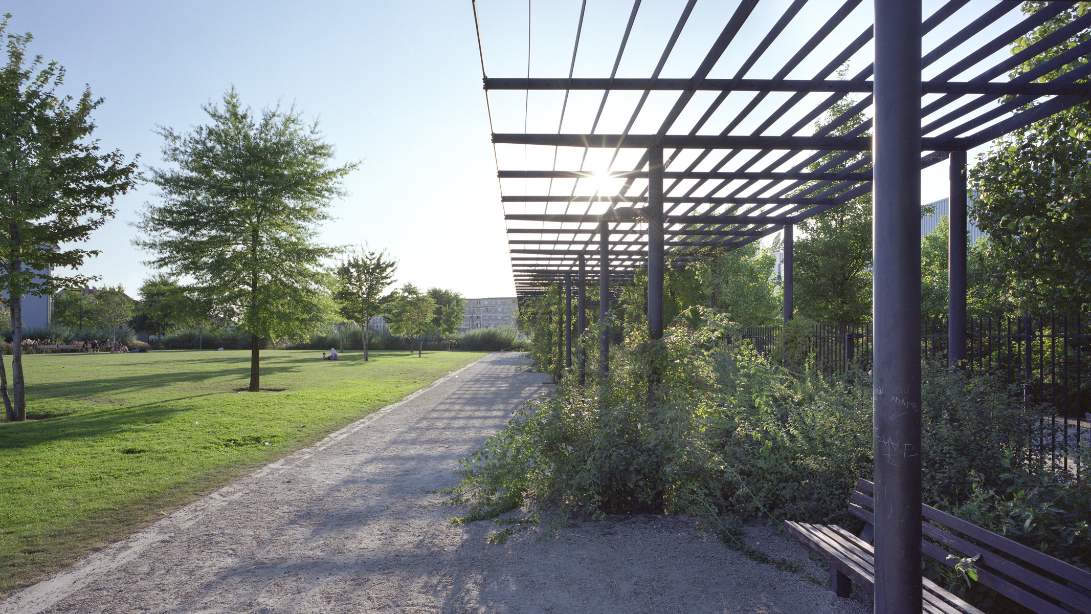 Situé le long du canal Saint Denis, le parc Elie Lotar est un lieu très apprécié des riverains par les espaces de jeux et de détente mais aussi par la passerelle, liant l’autre rive du canal. Les limites du parc sont traitées en un large fossé planté dissimulant une clôture et intégrant un ouvrage de rétention pouvant l’inonder. Une pergola couverte de roses propose un parcours coloré, parfumé et ombragé. Le cœur du parc est occupé par une pelouse où prennent place une aire de jeux, la pelouse est constituée d’un substrat associé à un réseau de drainage la rendant accessible par tous temps.
