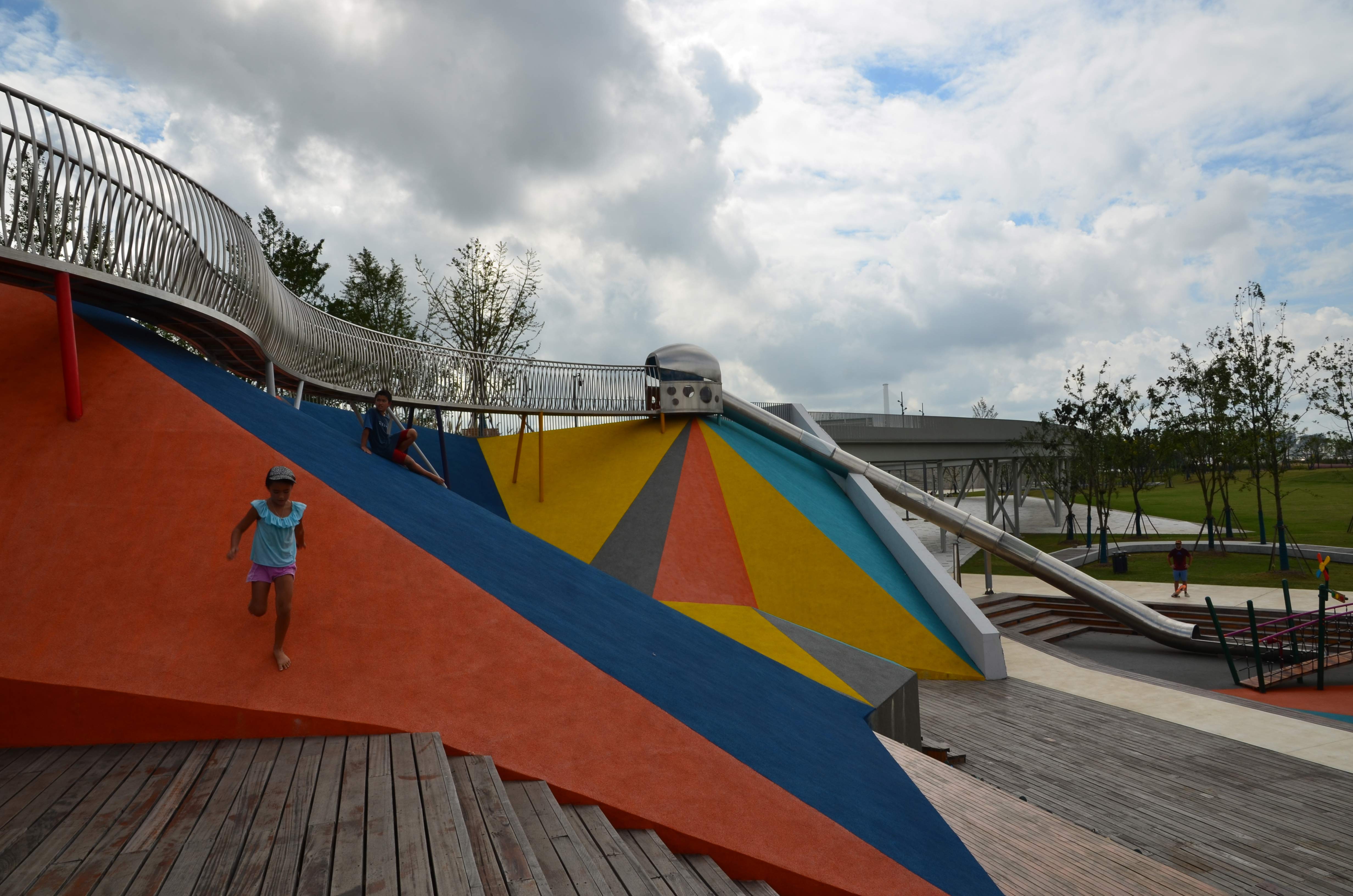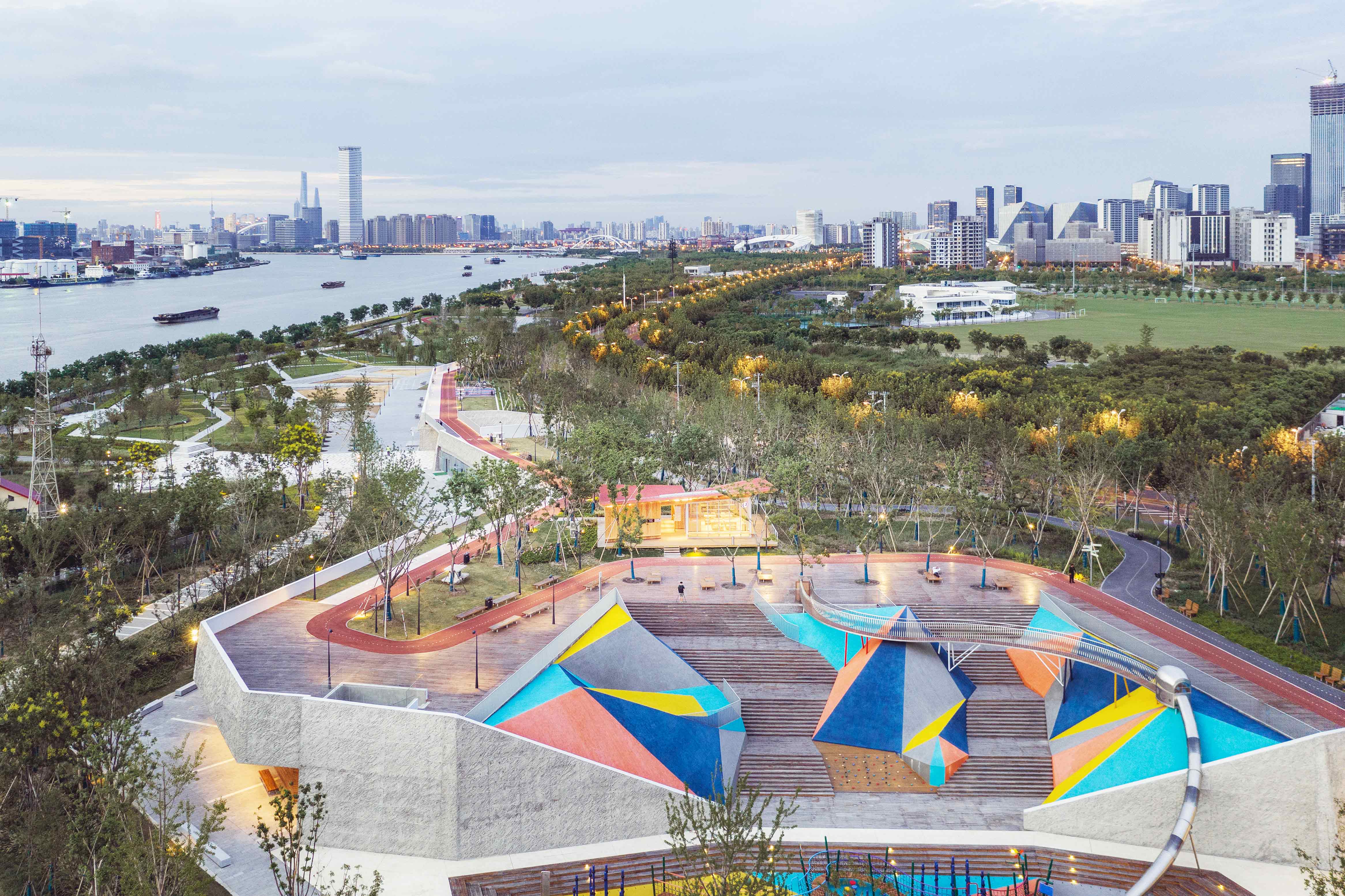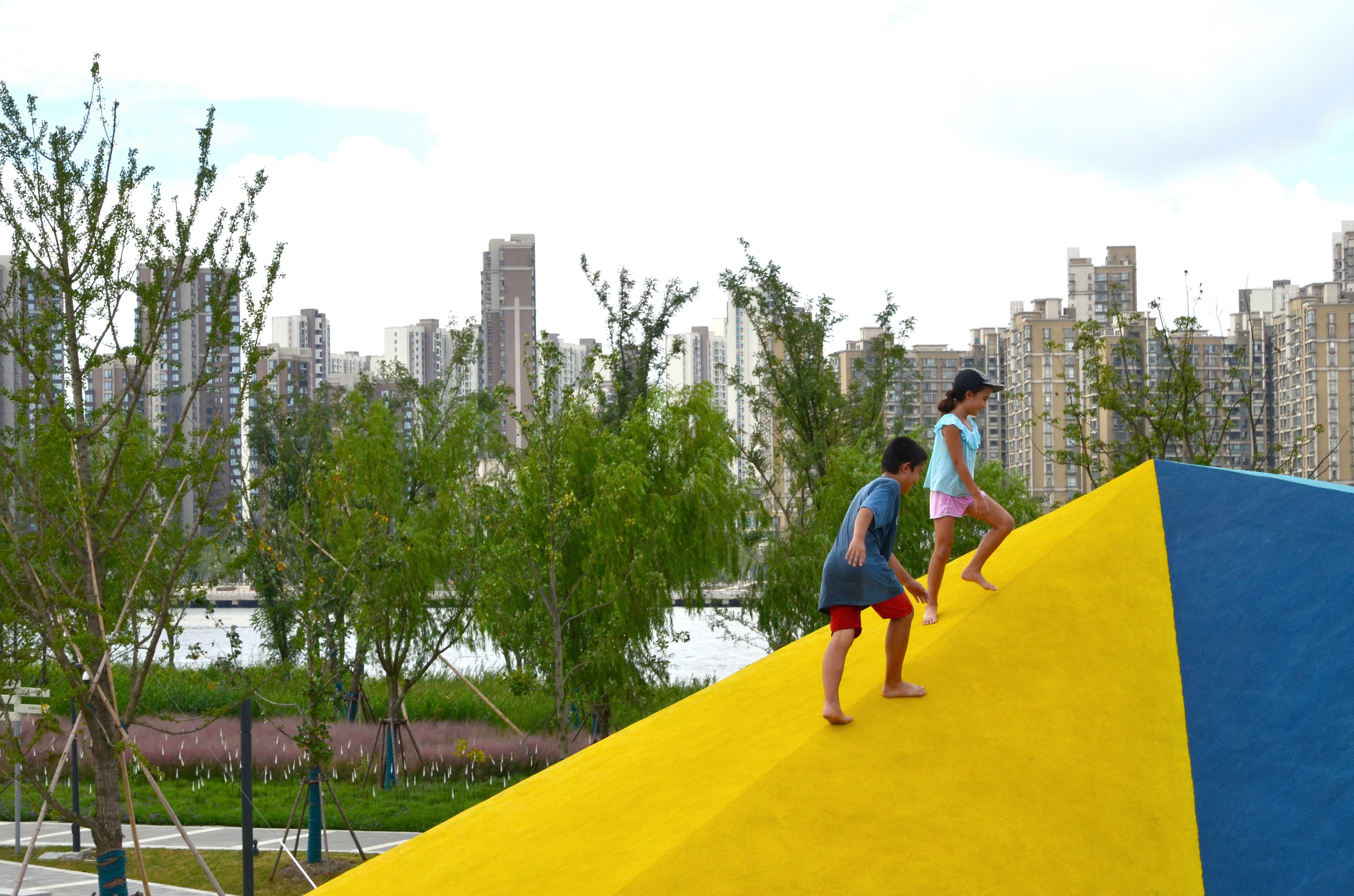 Ce parc appartient à la vaste opération de transformation des anciennes berges industrielles de Pudong sur le fleuve Huangpu. La pente douce invite les habitants à prendre de la hauteur sur le fleuve. A son point le plus haut, la colline tombe en falaise face au fleuve. Deux affaissements intègrent une grande aire de jeux pour enfants et un amphithéâtre. Côté fleuve, une grande promenade efface la présence du mur anti-crue et offre de nouveaux panoramas sur les rives. Au cœur du parc, une grande place accueille une halle de marché, des espaces de concerts et une large pelouse.