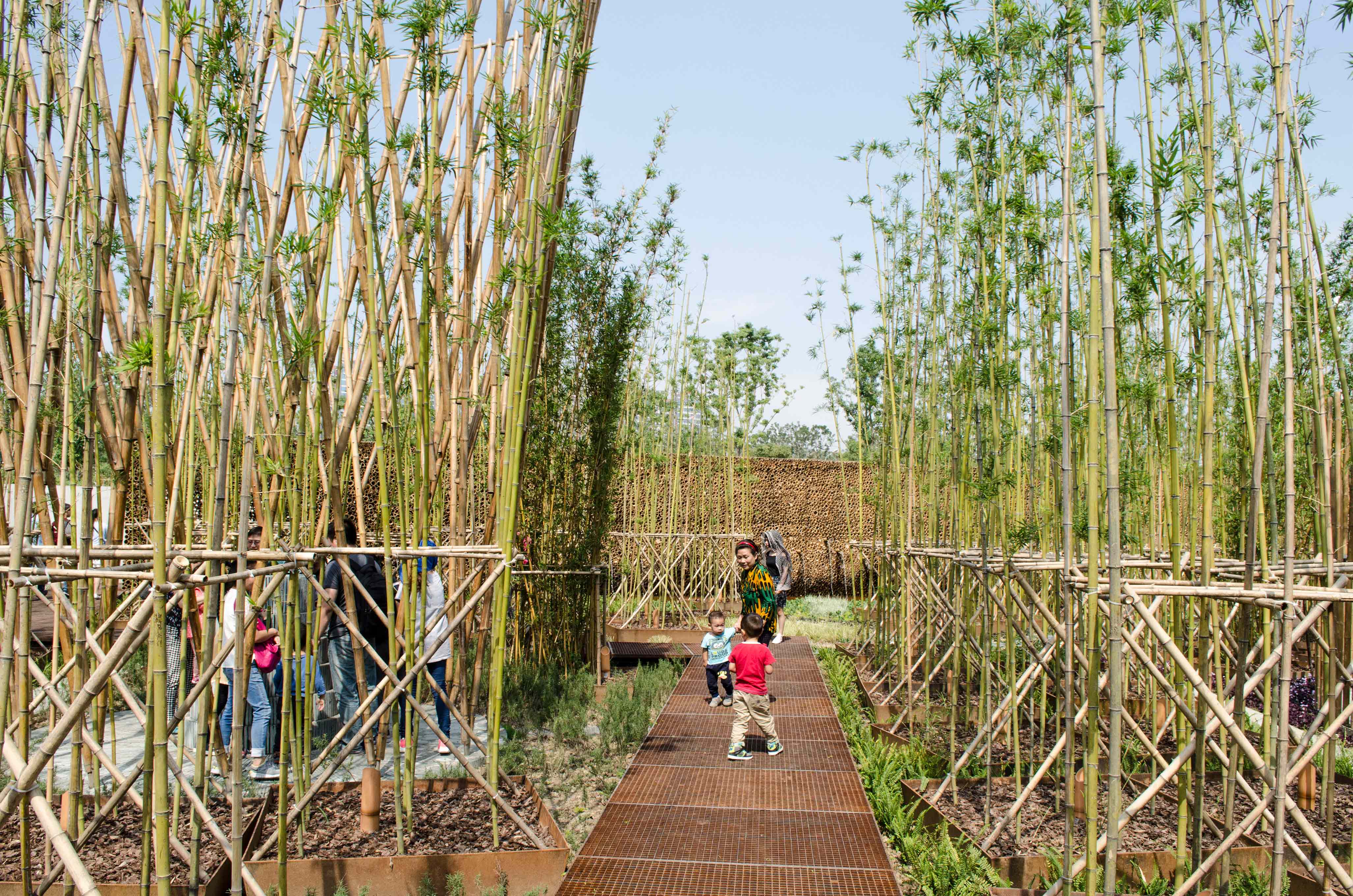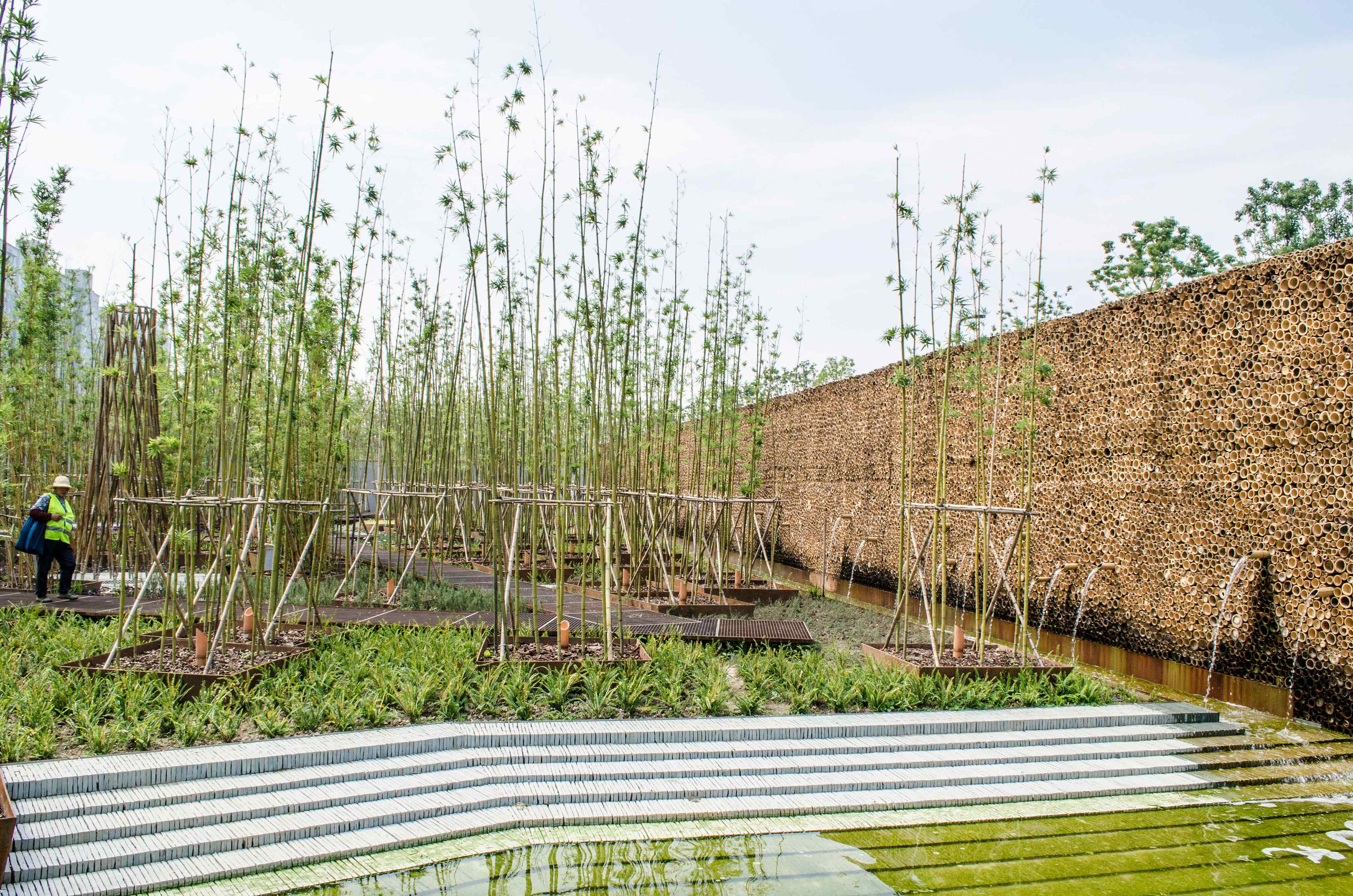 Ce jardin contemporain associe compréhension intellectuelle et culturelle tout en stimulant les sens et les émotions. Le cœur du jardin en creux symbolise la recherche d’eau pure dans les entrailles de la terre. Les murs de gabions, évoquent la stratification géologique. Le jardin, loin du bruit de la ville, crée un microclimat très agréable pour les étés arides de Wuhan. Le mur de bambous translucides, et les denses plantations créent un lieu où se balancent les ombres, un endroit labyrinthique sillonné par des sentiers en « pas japonais » qui invitent à la lenteur.