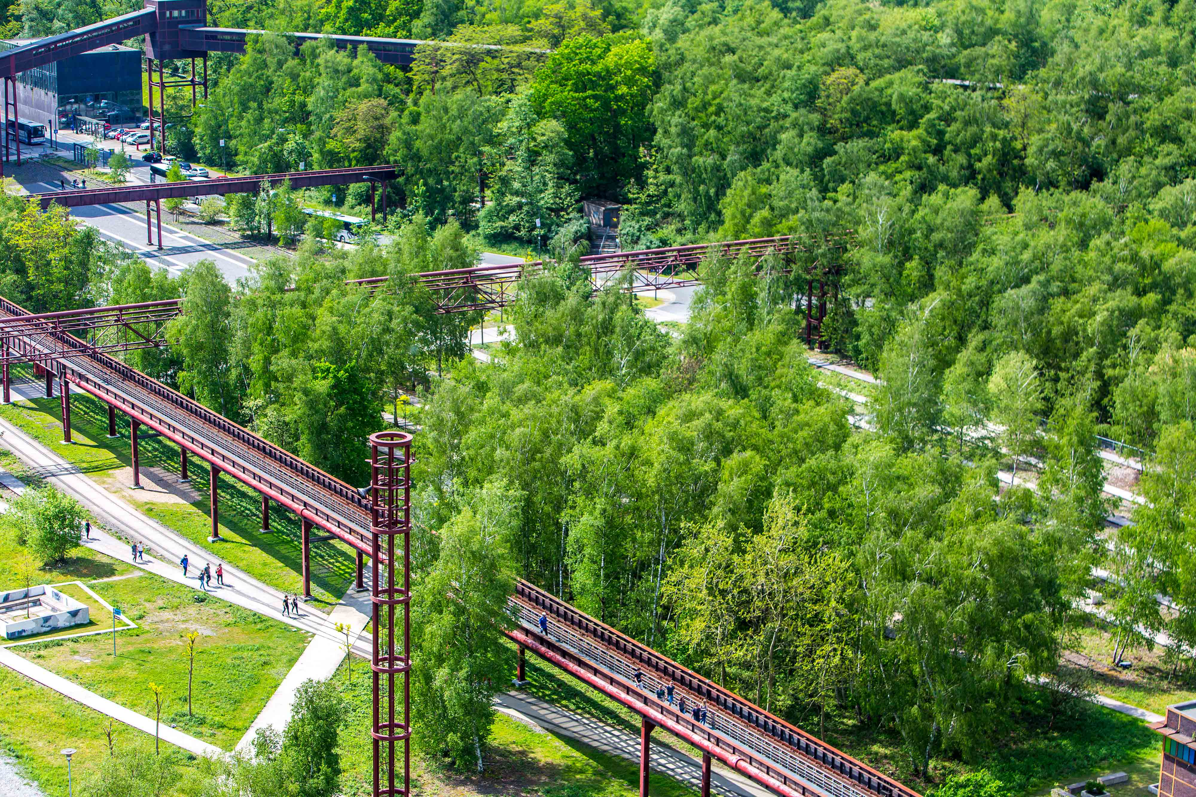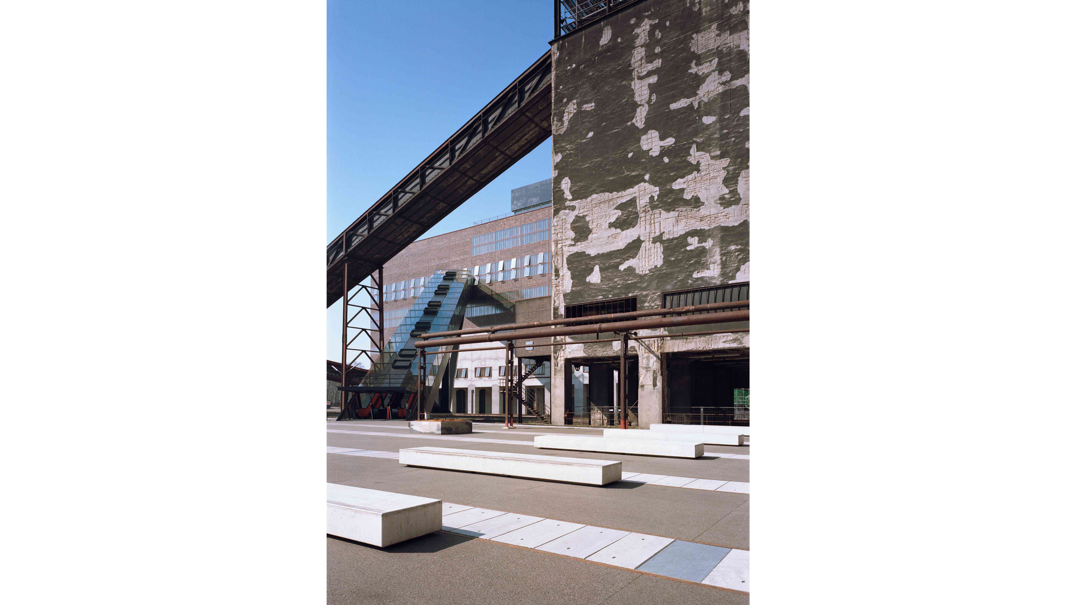 La mine de Zollverein étant classé au patrimoine mondial de l’humanité par l’Unesco il est nécessaire d’élaborer un master plan pour ce lieu en voie de reconversion. Le projet revisite la séparation entre la mine et les quartiers d ’habitation avoisinants, en installant un « ruban de développement » perméable, flexible autour du noyau du site qui, lui, est stable, intouchable et à préserver. Le parking, la place des fêtes, l’actuel musée de la Ruhr et le chemin installé sur une digue témoignent de la nouvelle vocation du site : on se sent attiré par l’accès facile, l’étendue et la simplicité.